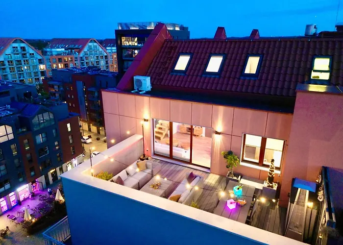 Apartmán Apartmán Waterlane Penthouse I Pool I Panoramic View, který nabízí krytý plavecký bazén a terasu, se nachází ve čtvrti Centrum, 2 km od Park Oruński. Zlatá brána najdete ve vzdálenosti 1 km od ubytování, a snadno se dostanete i do Lowland Gate in Gdansk.